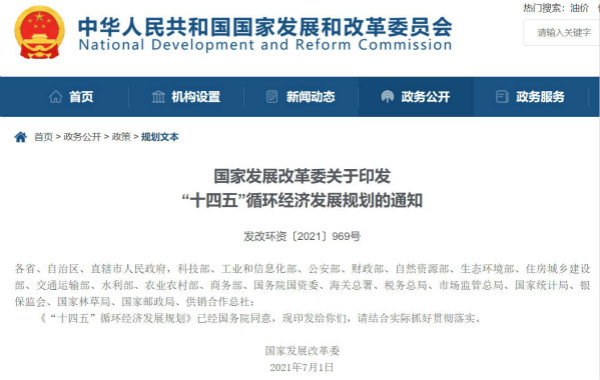 近日,國家發展改革委印發了《“十四五”循環經濟發展規劃》(以下簡稱《規劃》),著重部署了今后一段時期我國循環經濟發展的總體思路、主要任務和工程行動以及保障措施,指明了“十四五”循環經濟發展路徑,這一重要戰略的出臺,迅速引起了社會和媒體的高度關注。